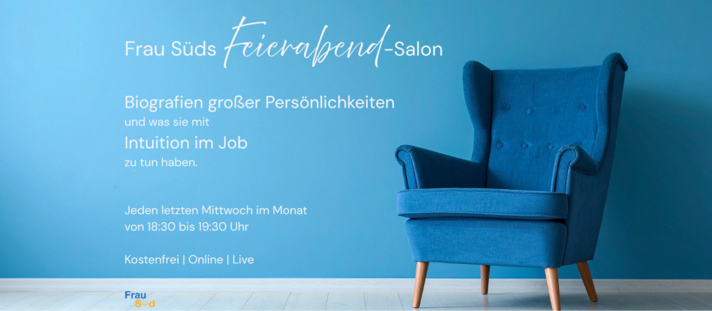 Ich liebe Biografien und begeistere mich für das Thema Intuition. Beides verbinde ich nun in meinem Feierabend-Salon. Wir schauen gemeinsam hinter die Kulissen: Was machte den Erfolg großer Persönlichkeiten aus – und welche Rolle spielte dabei ihre Intuition?